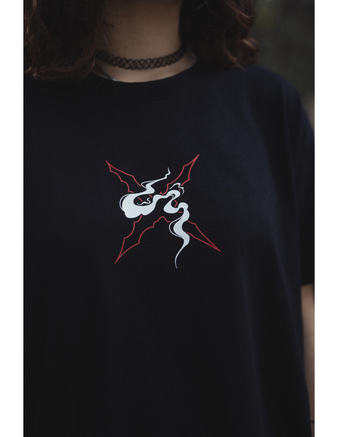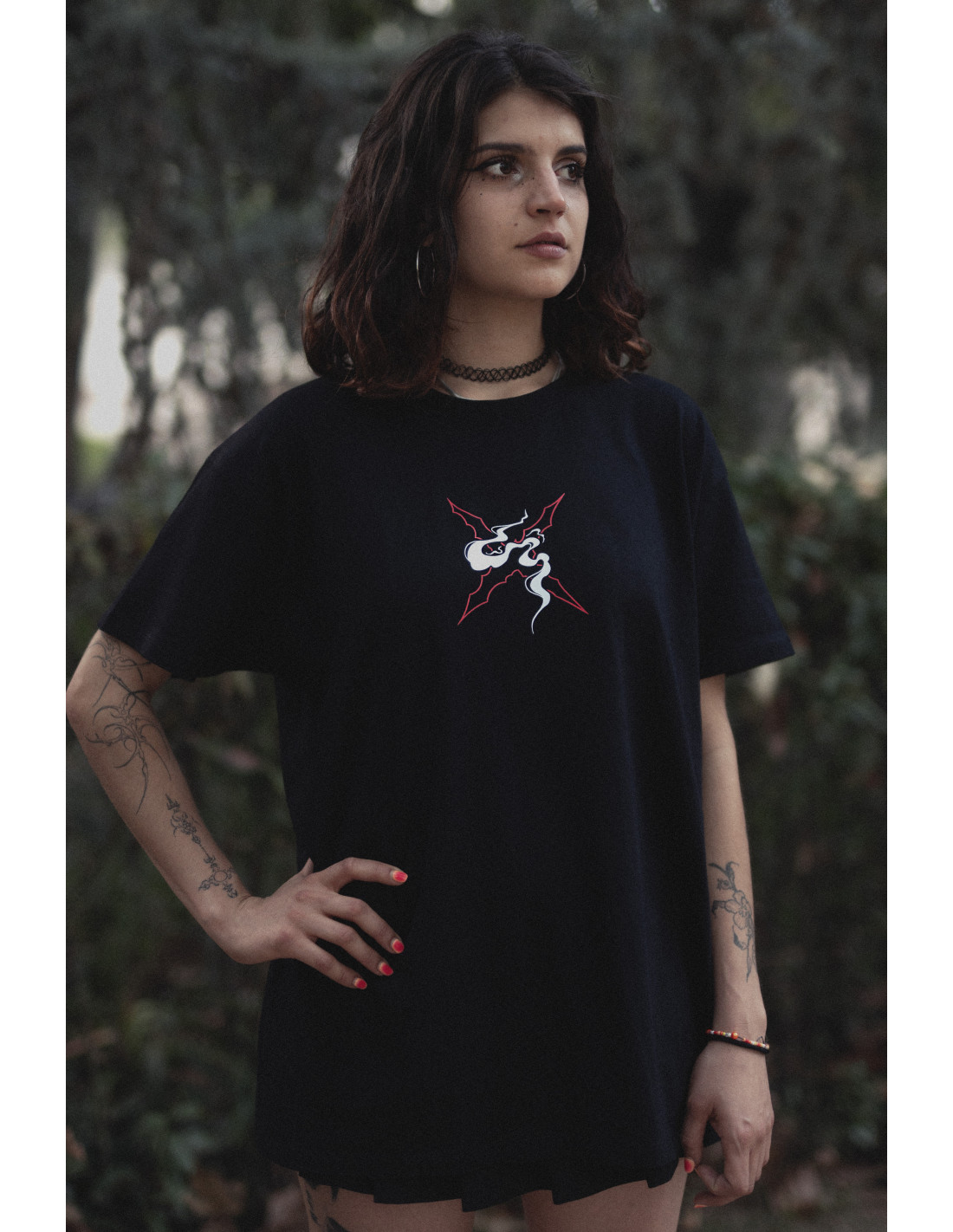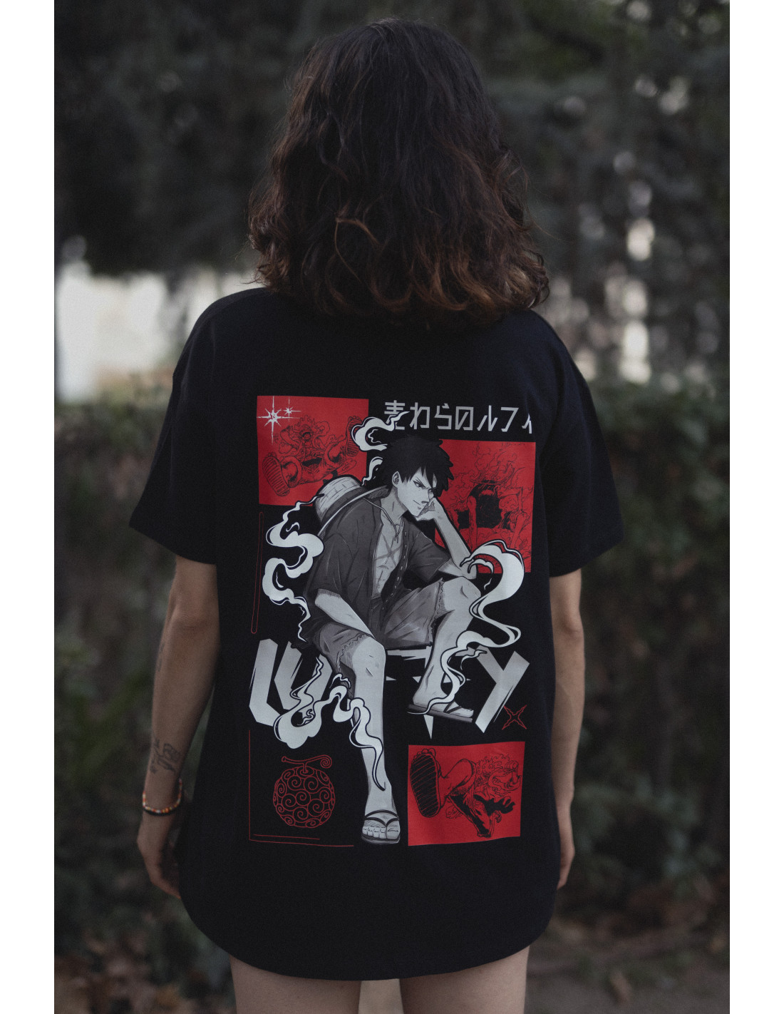 Camiseta negra diseño LUFFY inspirado en el personaje Luffy D. Monkey del anime One Piece.