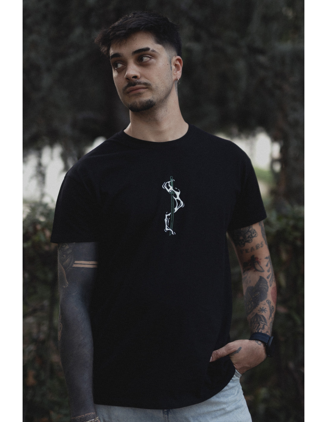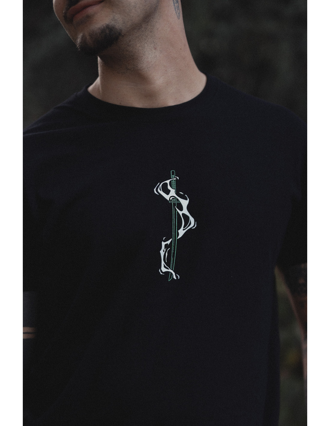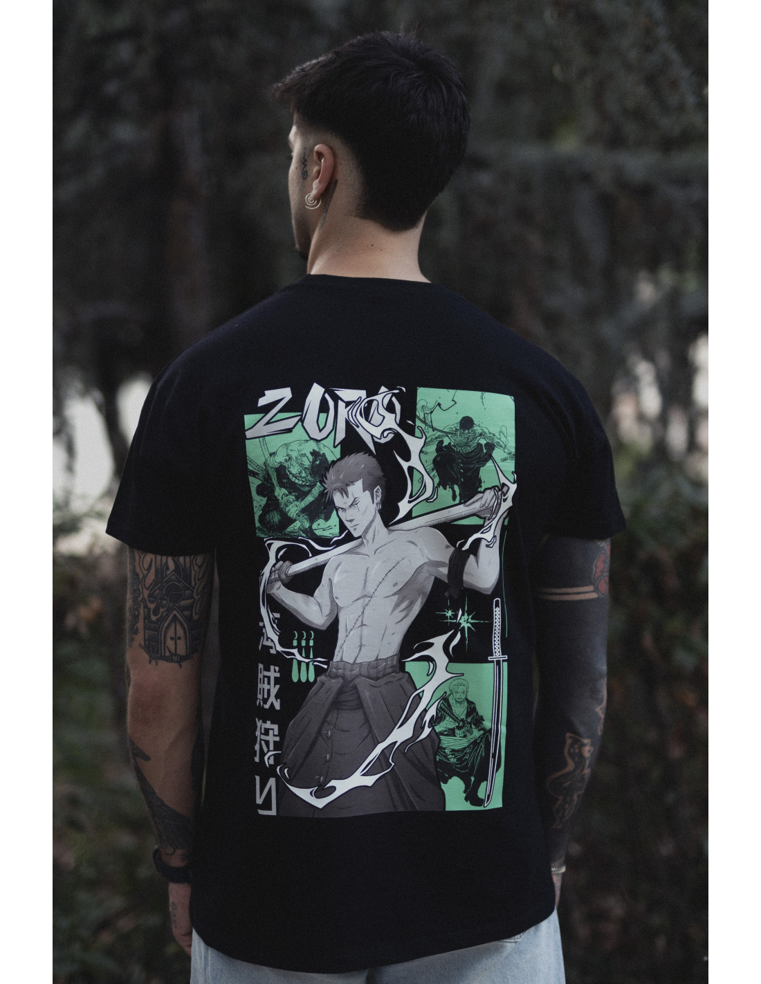 Camiseta negra diseño ZORO inspirado en el personaje Zoro del anime One Piece.